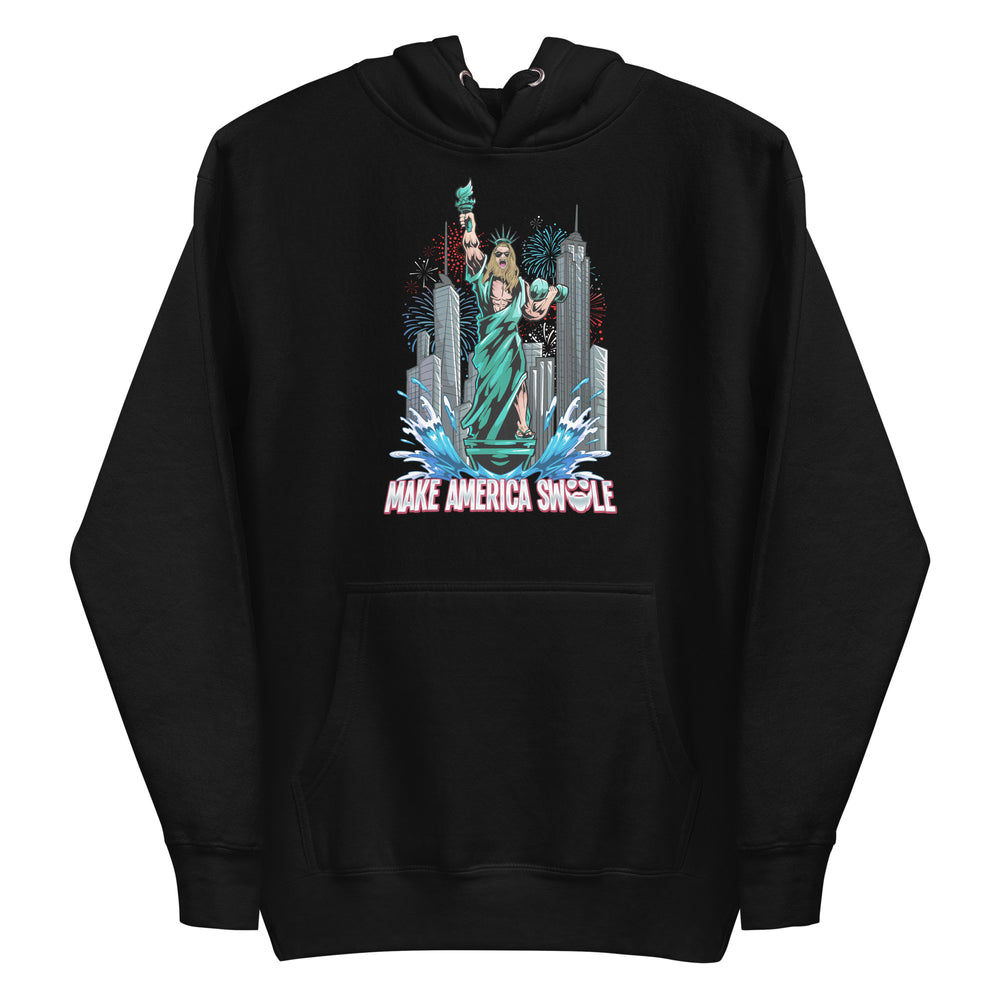 Make America Swole (Image) Premium Hoodie - Black / S is backordered and will ship as soon as it is back in stock.