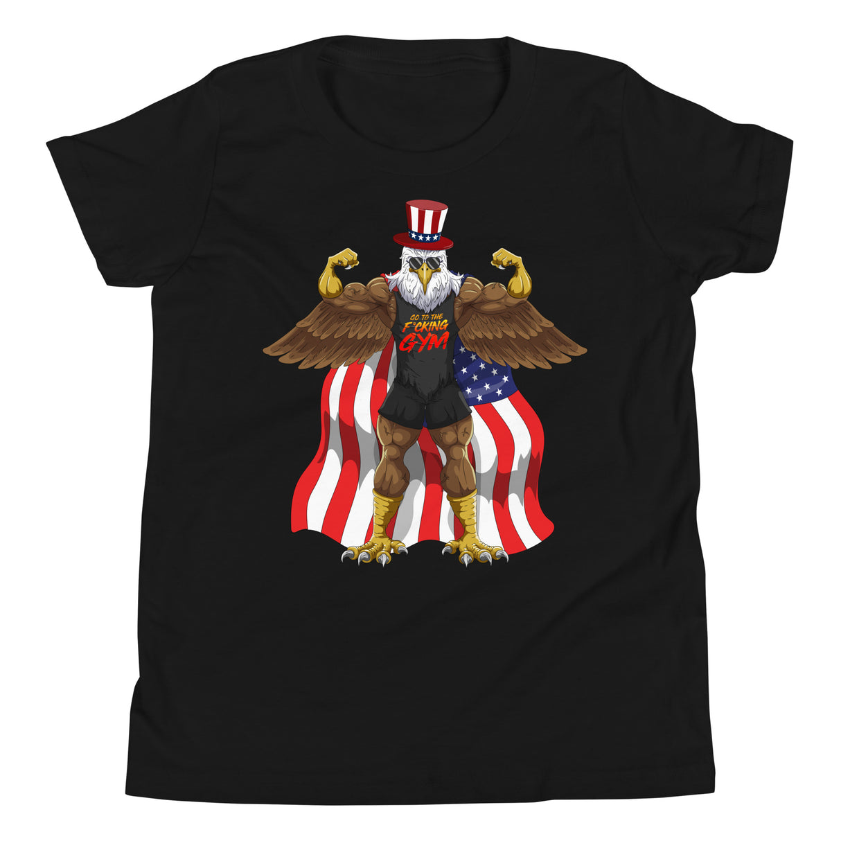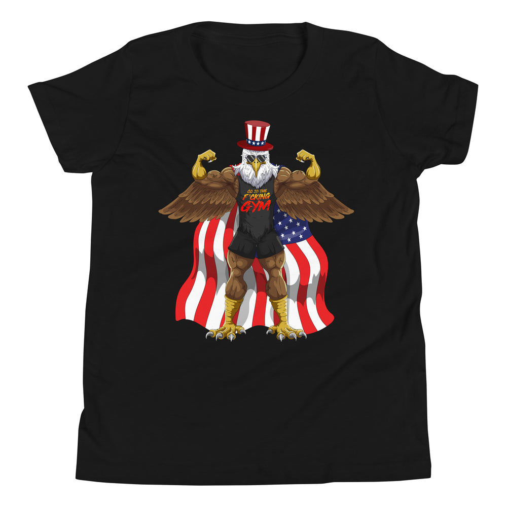 Flexing Bald Eagle Kids T-Shirt - Black / S is backordered and will ship as soon as it is back in stock.